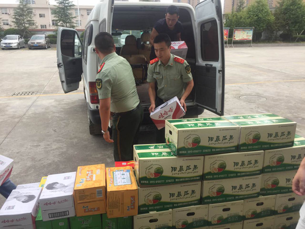 消防官兵與我們的日常生活聯(lián)系緊密,很多時候都不惜冒著生命危險沖鋒在危險困境中,只為了保護更多人的生命和財產(chǎn)安全。在他們的心中,始終裝著人民,為人民服務(wù),這樣的奉獻和敬業(yè)精神是我們學(xué)習(xí)的楷模。陽晨集團也是一個大愛的企業(yè),在發(fā)展自身的同時,也時刻不忘感恩和回報社會。就著這樣一個機會,我們帶著在陽晨農(nóng)業(yè)園區(qū)采摘的葡萄、西瓜、甜瓜以及酸梅汁、綠豆、綠茶等消暑物資來到了漢濱區(qū)消防支隊,表達對敬愛的消防官兵們的謝意和崇敬。