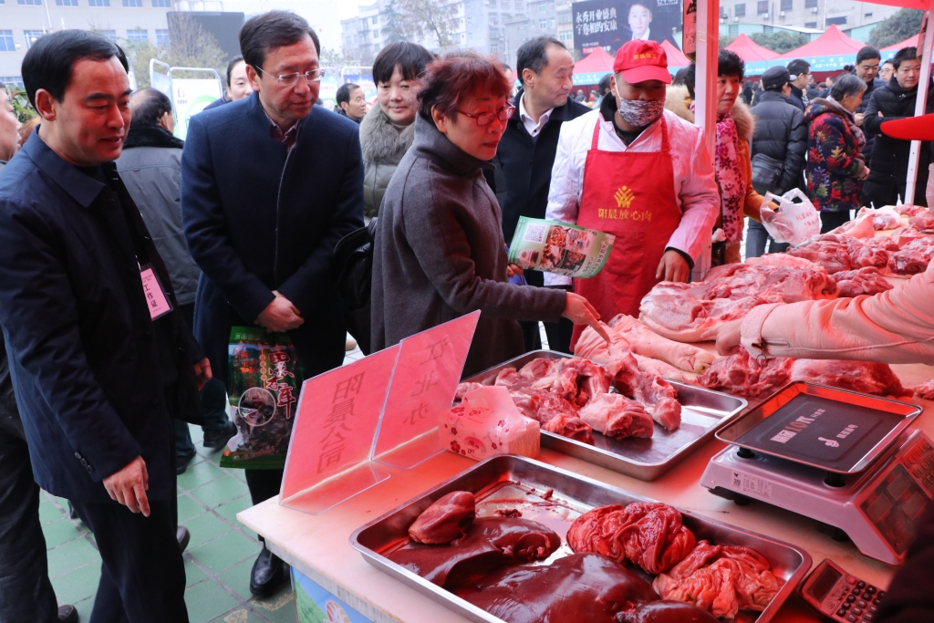 12月23日,陜西陽晨牧業(yè)股份有限公司生豬產業(yè)助力脫貧攻堅,確保市場供應安全“五進”活動啟動儀式在漢濱區(qū)第一書記農產品推介展銷會暨“萬企幫萬村”推進會上亮相,向廣大市民推介展銷陽晨放心豬肉。